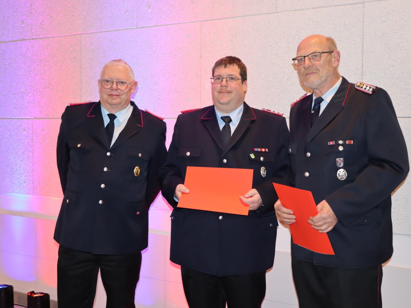 Für 25 Jahre Dienst wurden Dieter Schmidt und Hendrik Meyer ausgezeichnet. Der Landesfeuerwehrverband ehrte Claus Wittneben für 25 Jahre und Frank Hacke für 50 Jahre im Musikzug. Hacke wurde zugleich als ehemaliges aktives Mitglied für 50 Jahre Mitgliedschaft in der Feuerwehr insgesamt ausgezeichnet.